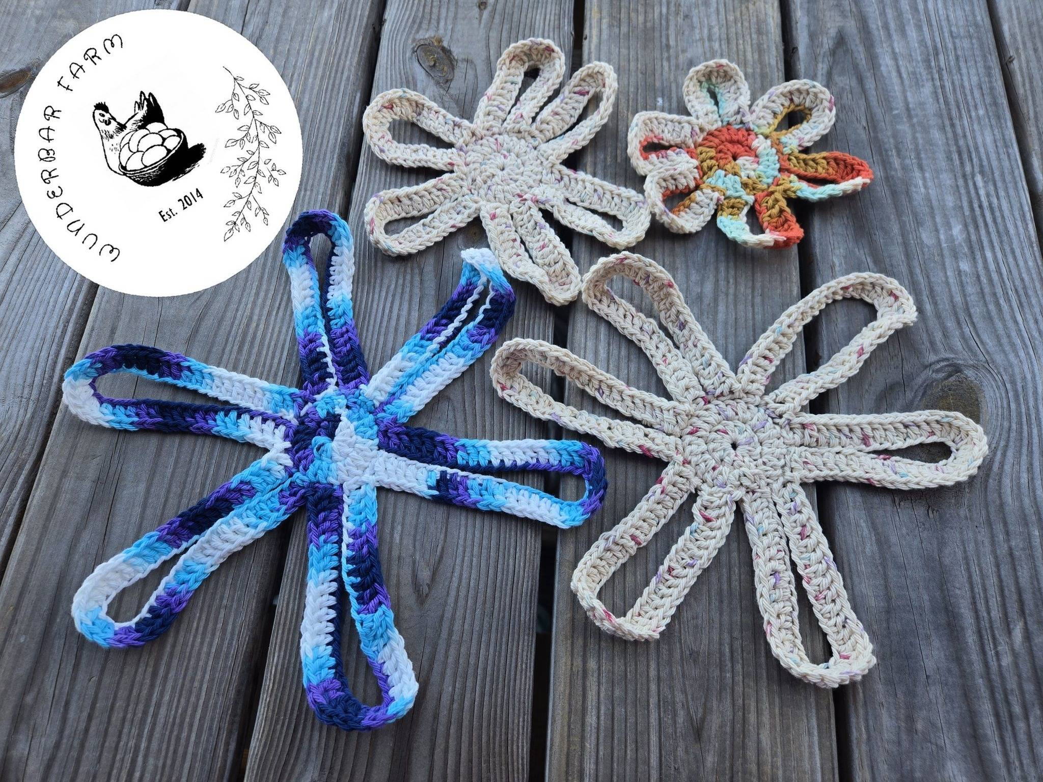 The Flower Power Pan Protectors by Wunderbar Farm on IG! "A well-loved farm kitchen sees a lot of pots and pans. Farm life means cooking from scratch, stacking cookware, and finding simple ways to make the little things last longer. These hand-crocheted pan protectors help keep our pans scratch free while adding a bit of handmade charm to everyday life. These were so much fun to make."
