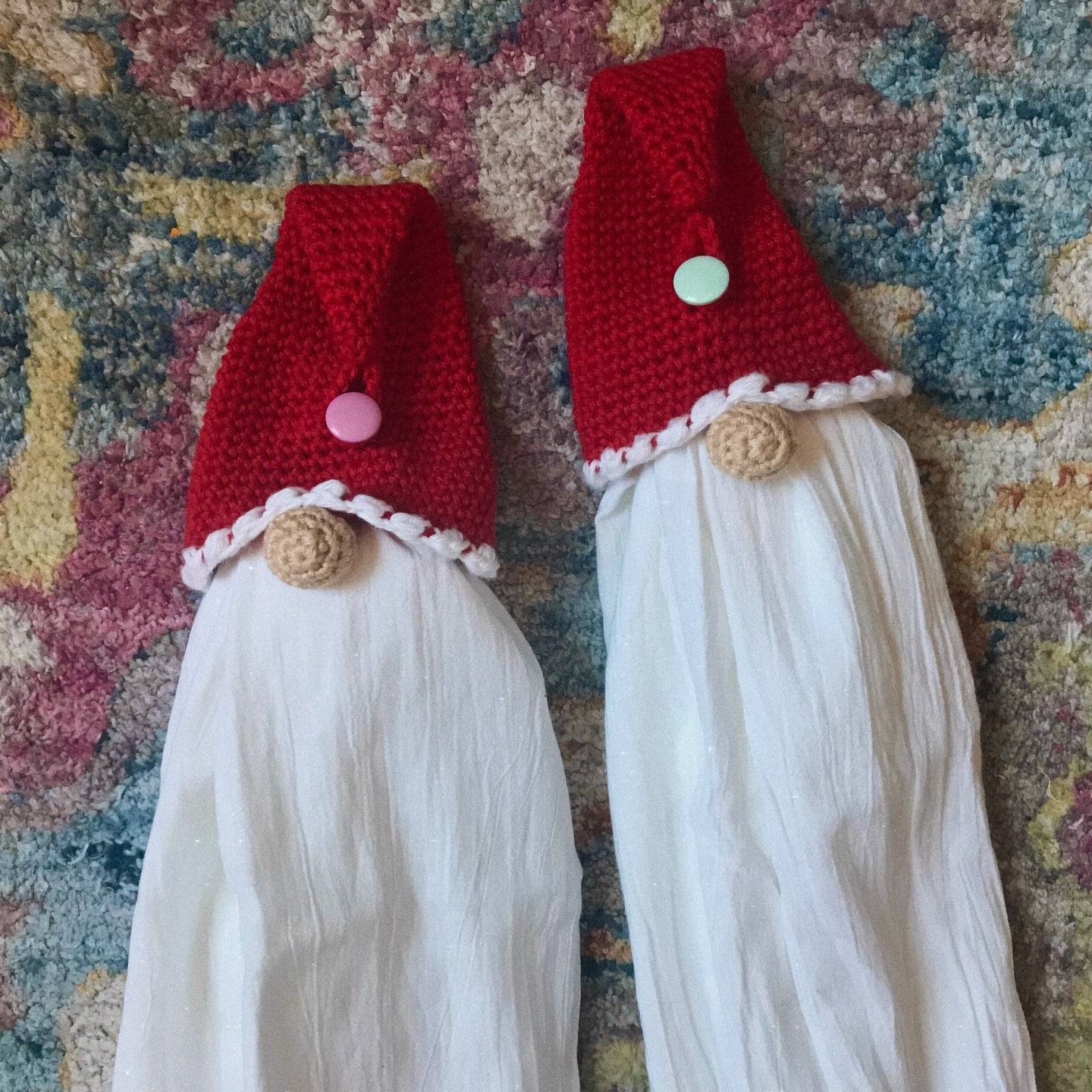The Gnome Towel Topper by deathwish.crochet on IG! "I love these so much!! 😍 Beautiful and functional little Christmas gifts that work up pretty quickly! Thanks so much for your pattern, I loved making it and have plans to make even more! 🫶